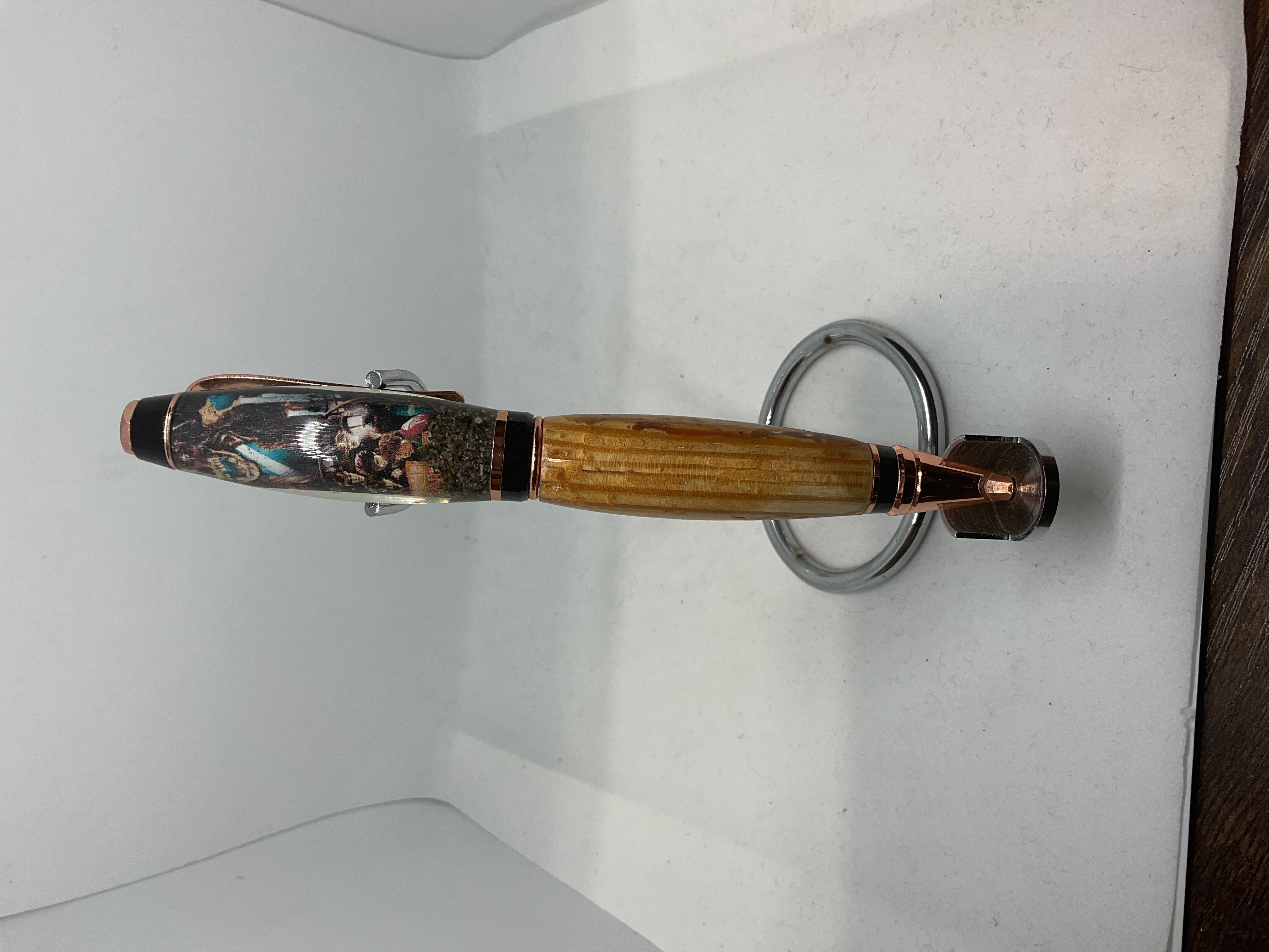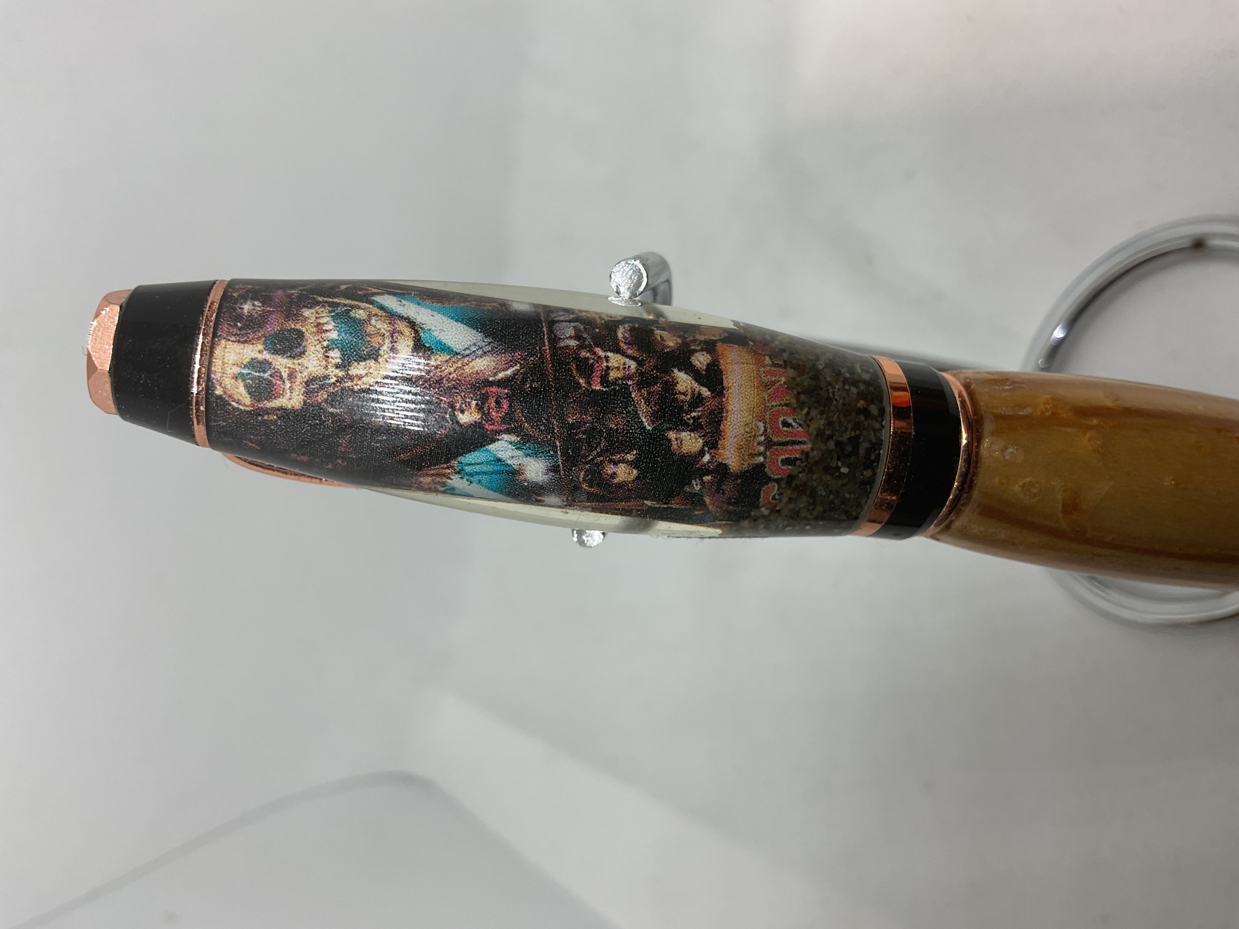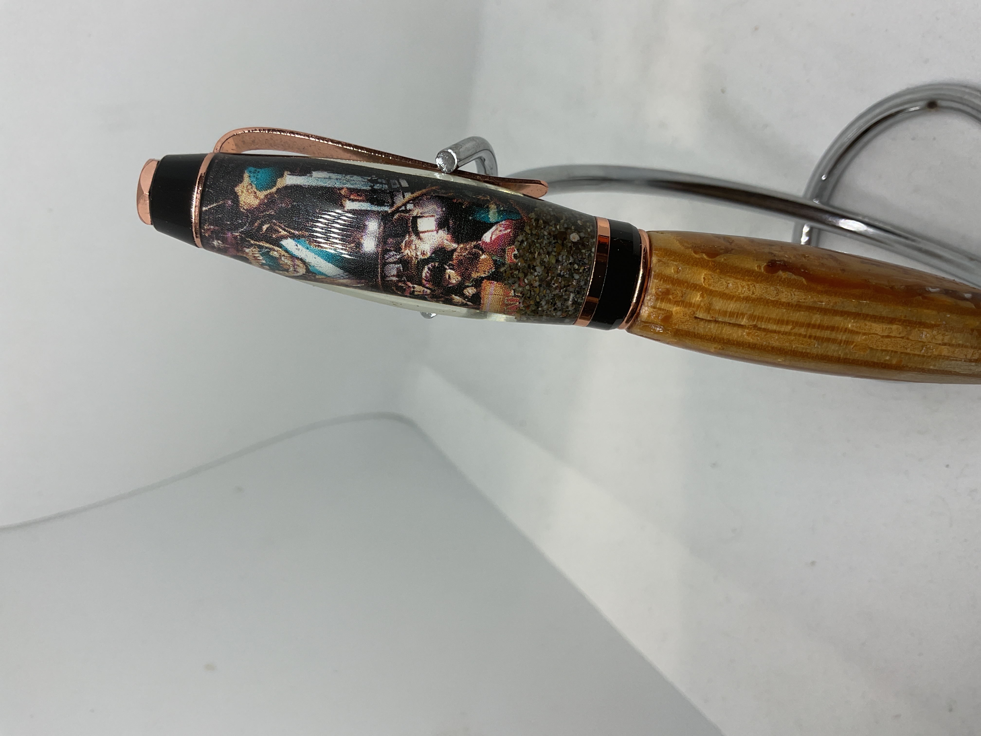 Handmade twist style pen, made with wood from the house featured in the movie Goonies and sand from Goat Rock beach where the final scene was filmed. Pen accepts Parker style refills.