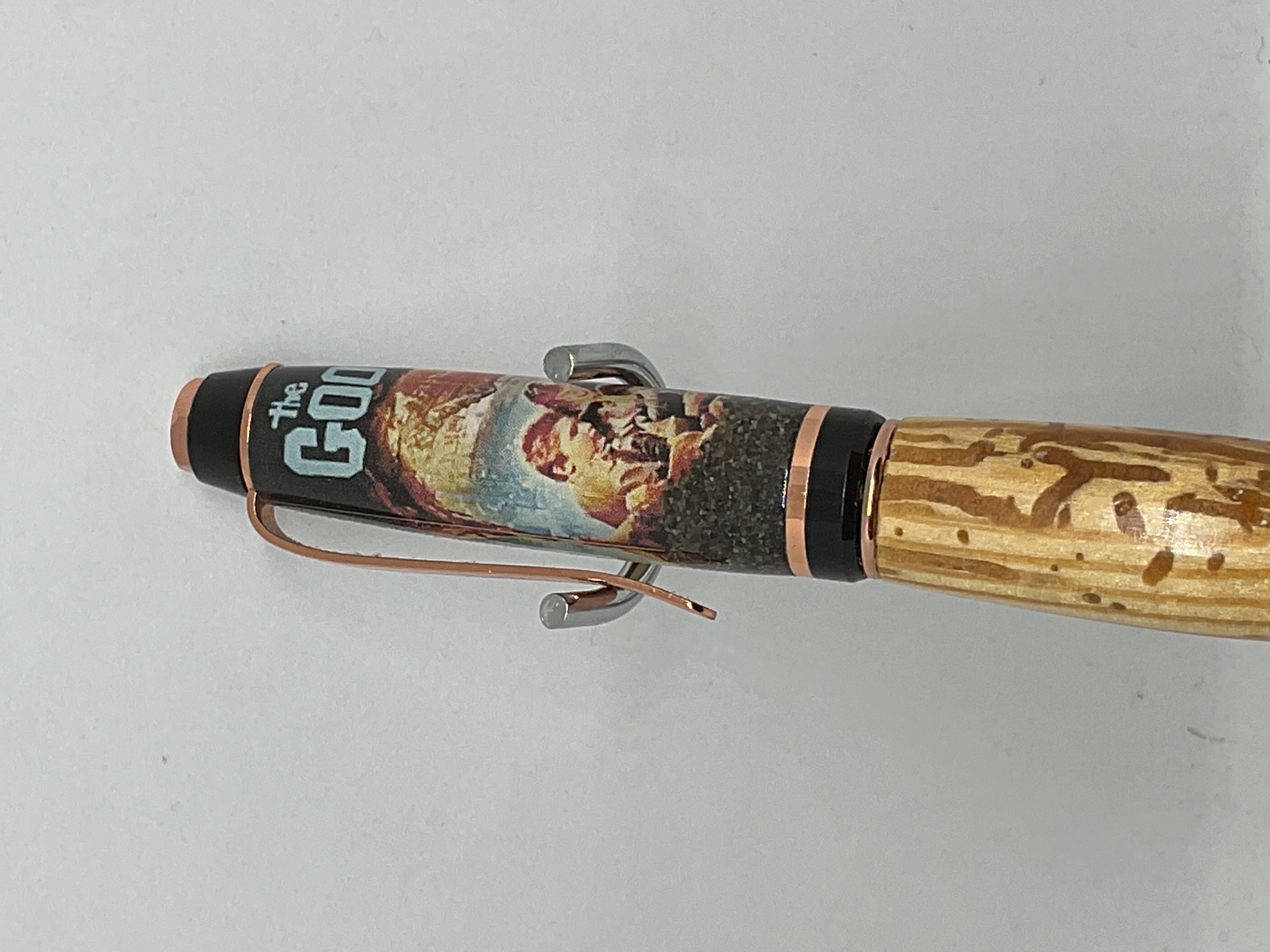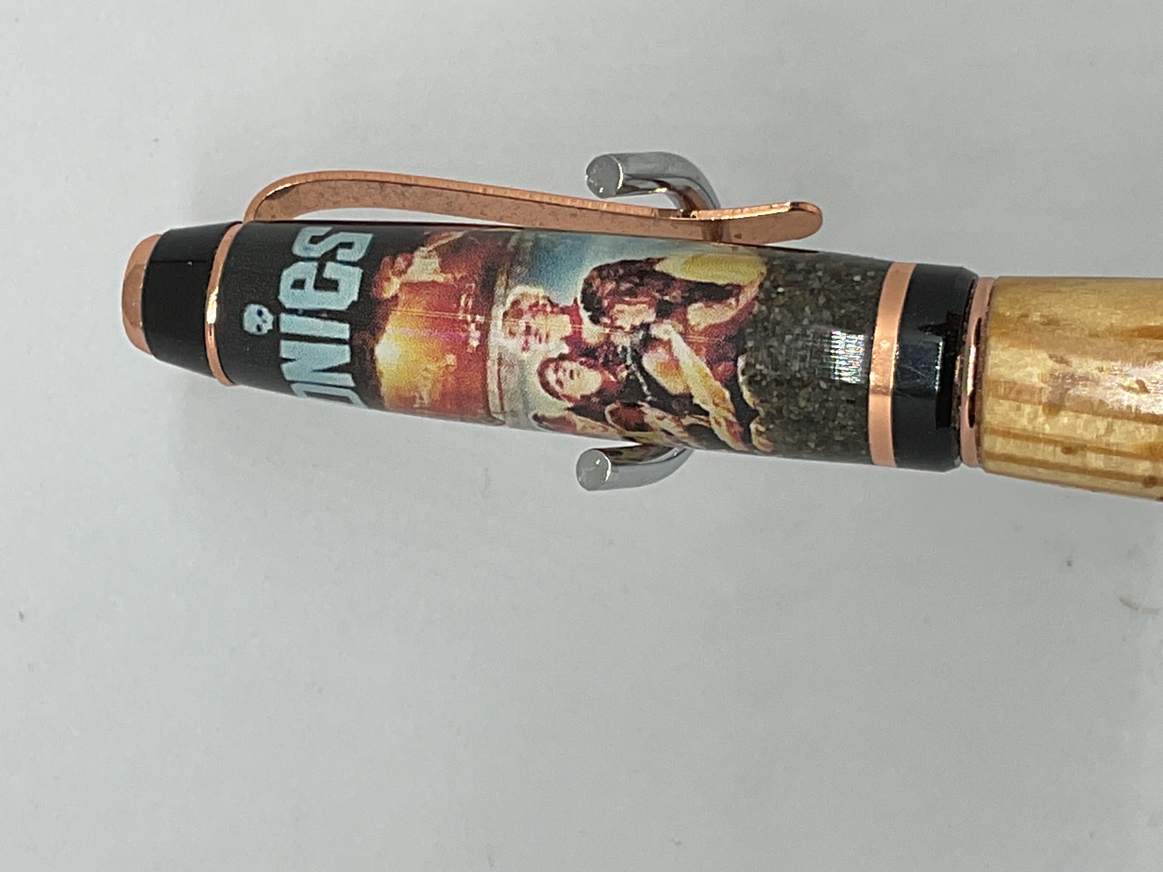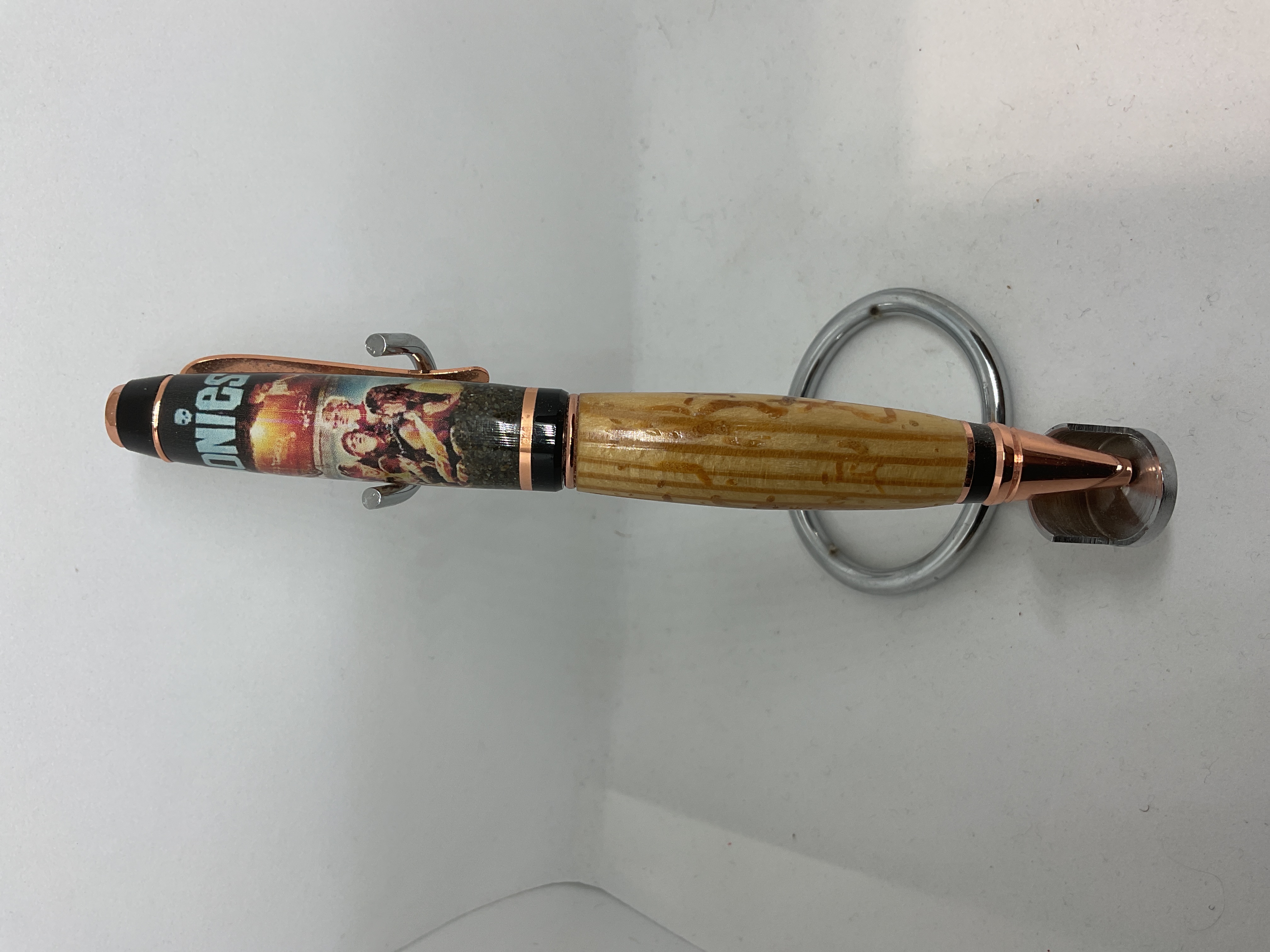 Handmade twist style pen, made with wood from the house featured in the movie Goonies and sand from Goat Rock beach where the final scene was filmed. Pen accepts Parker style refills.