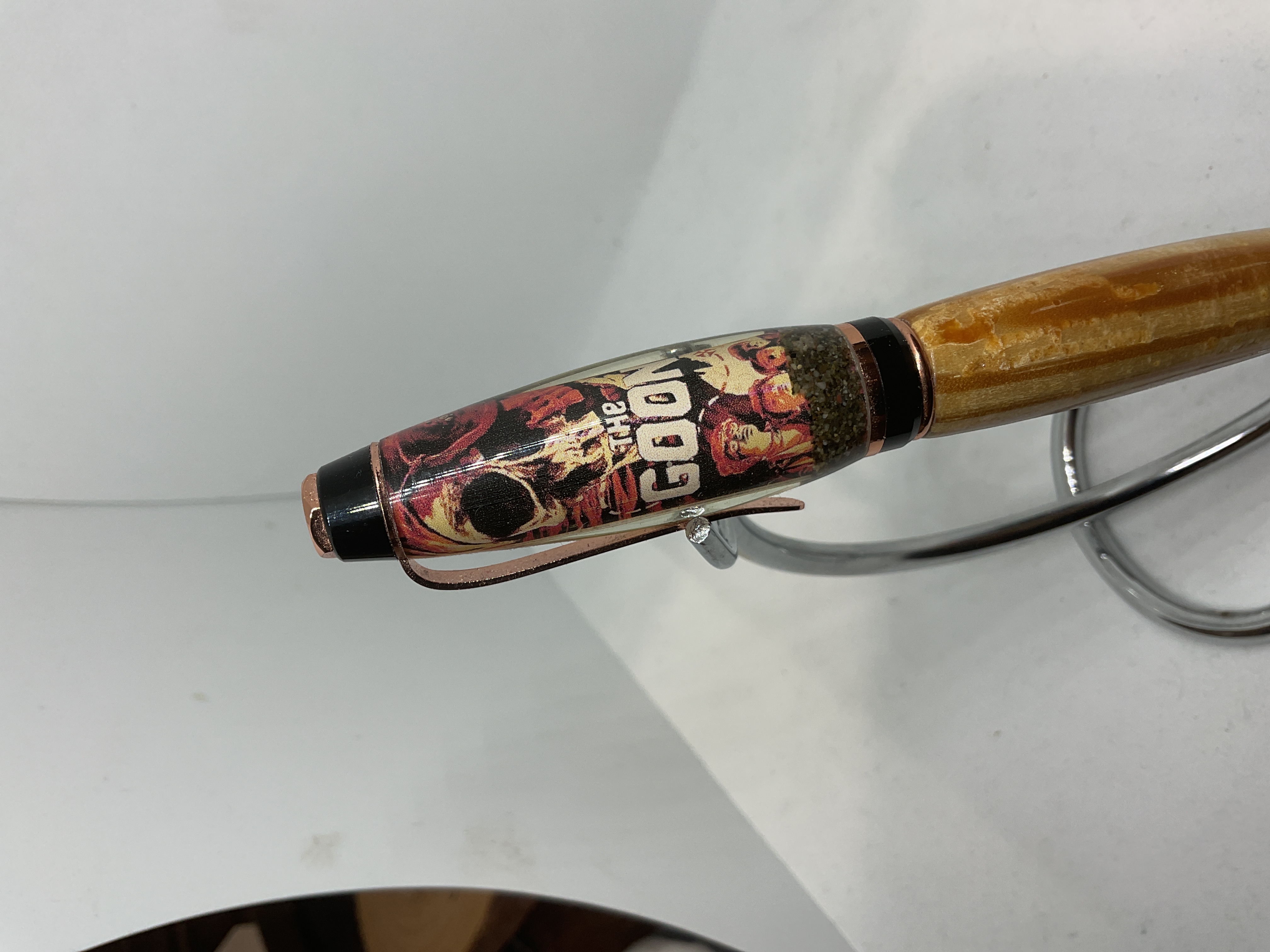 Handmade twist style pen, made with wood from the house featured in the movie Goonies and sand from Goat Rock beach where the final scene was filmed. Pen accepts Parker style refills.
