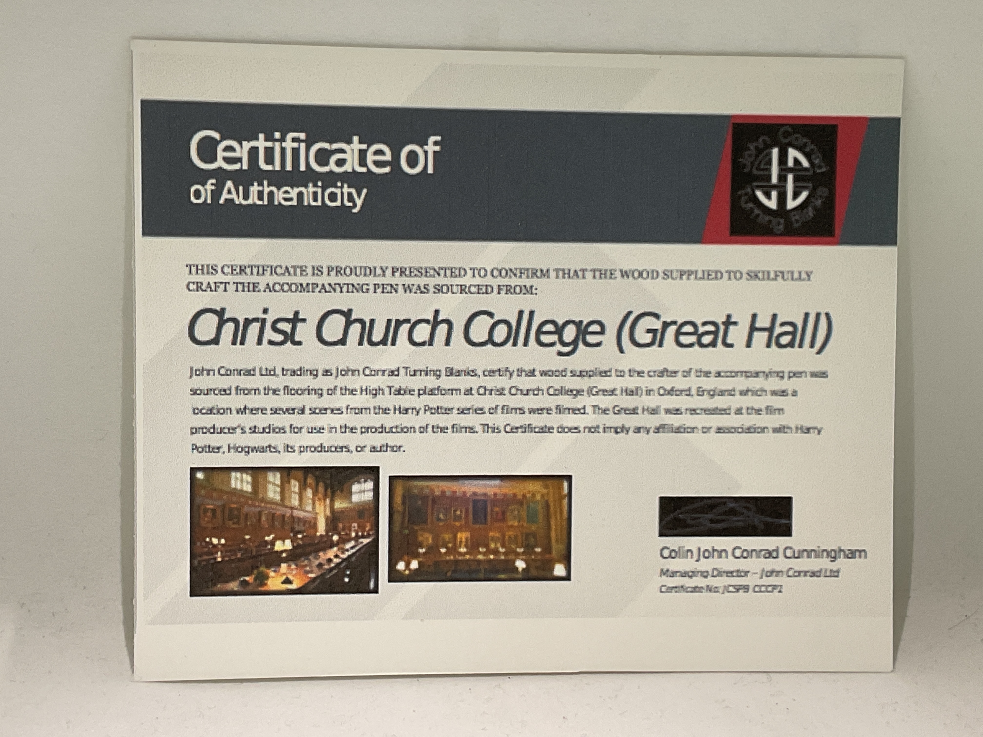 Fountain pen sourced from wood from Christ Church College, where scenes from the great hall were filmed.