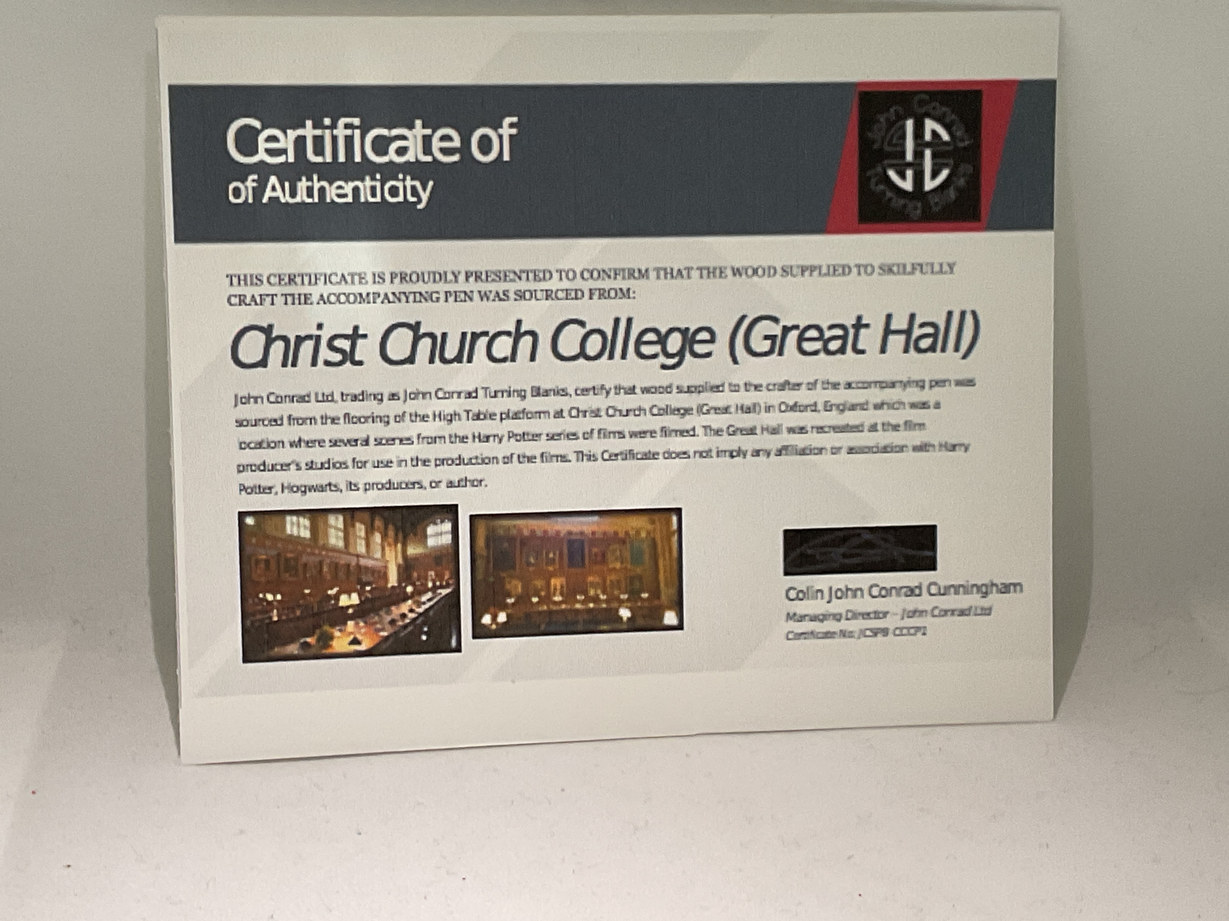 Fountain pen sourced from wood from Christ Church College, where scenes from the great hall were filmed. A larger pen then our slim one.