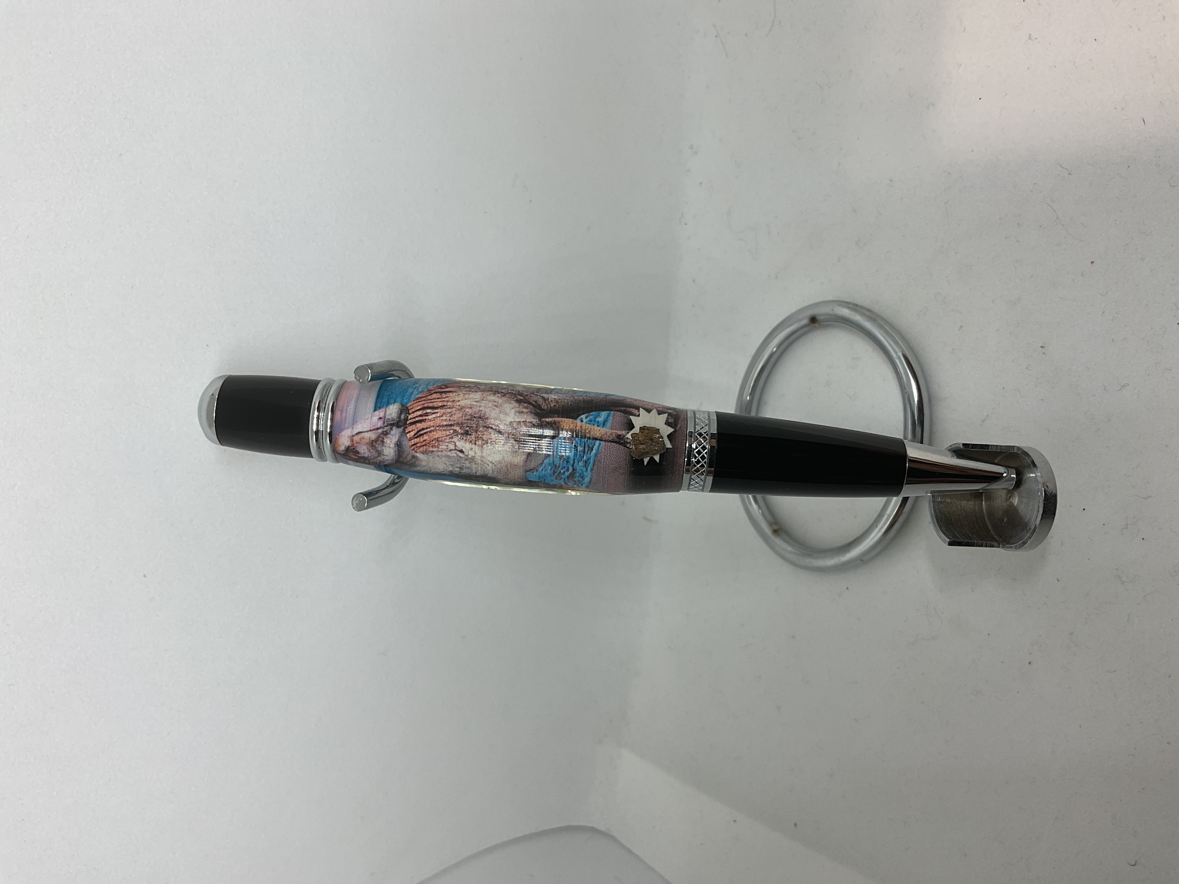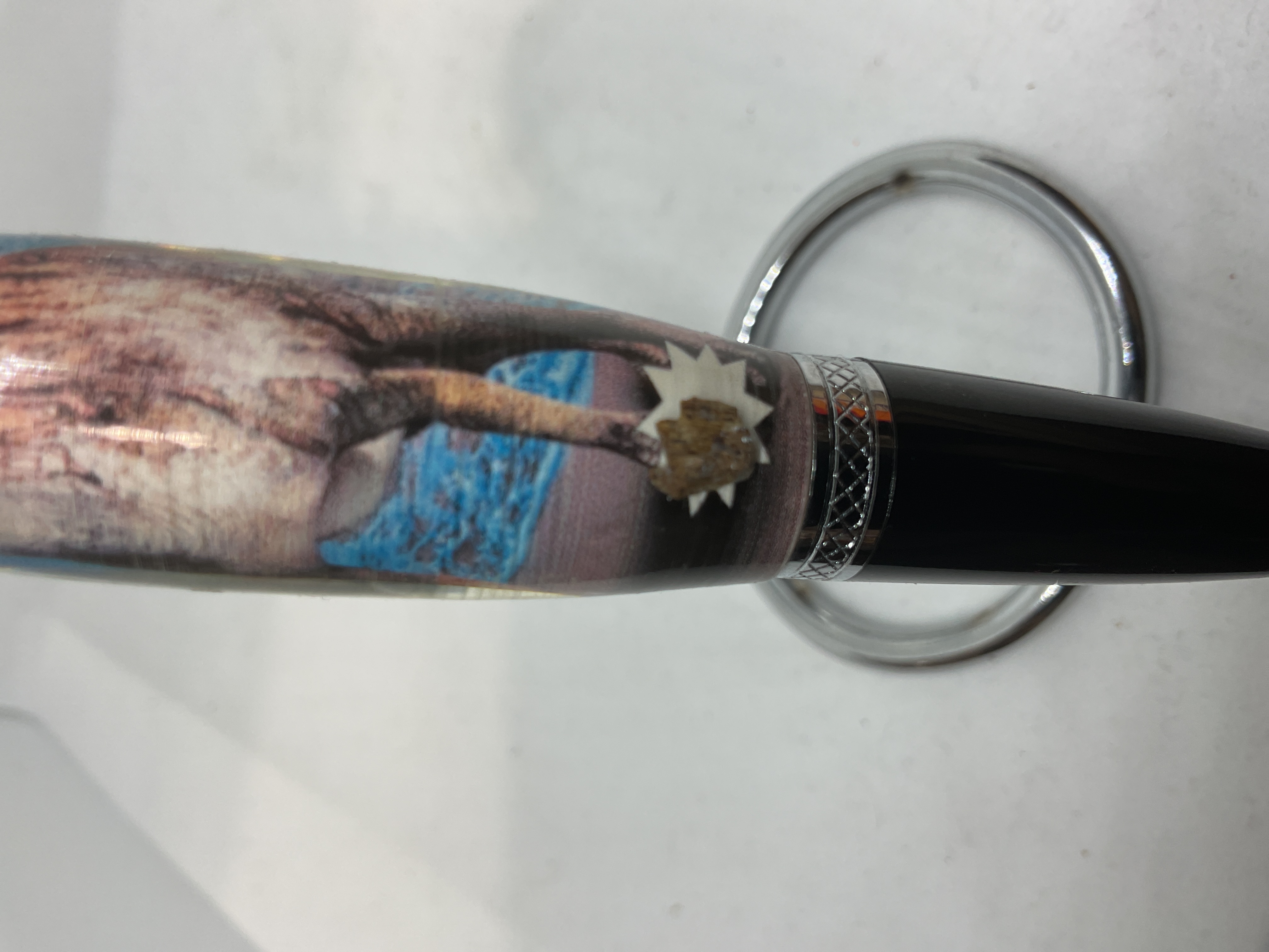 Twist style pen uses Parker refills. Contains a piece of fossil from a Hadrosaur dinosaur. Includes a certificate of authenticity.